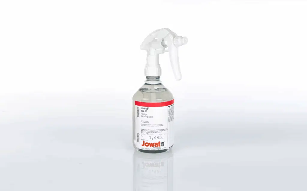 Jowat® 402.60 is a liquid cold cleaner developed for the removal of thermoplastic or non-crosslinked PUR hot melt adhesives and water-based glues.