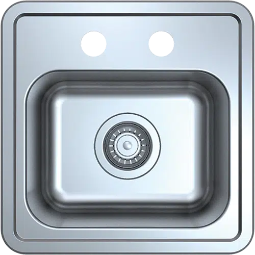 [ExtendedDescription] => Drop-In 15"x15" OD 5-1/2"D 2-Hole Faucet mounting 22 gauge Type 304 18/10 CrNi U1515-22-ADA