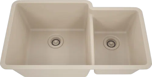 The QS-60/40 from SharpSinks EarthStone Quartz Collection. With two unequal bowls in a 60/40 ratio this is a great choice for style and functionality.