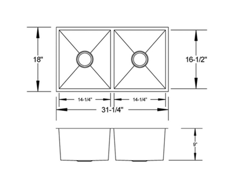 • Durable 16 Gauge 50/50 Double Basin Undermount Kitchen Sink