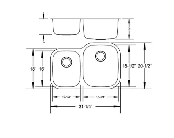 [ExtendedDescription] => Undermount Dbl Bowl 31-1/4"x20-1/2"OD 7"|9"D 16 Gauge Type 304 18/10 CrNi Large Bowl Right