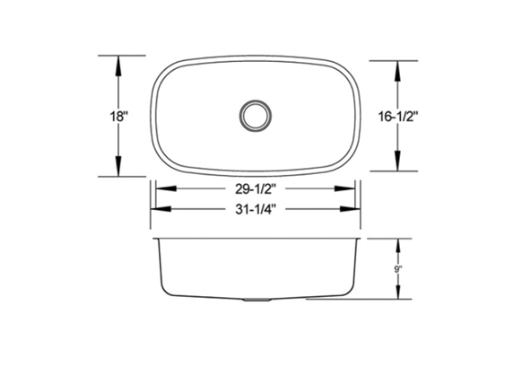 [ExtendedDescription] => Undermount Single Bowl 31-1/4"x18"OD|9"D 16 Gauge Type 304 18/10 CrNi