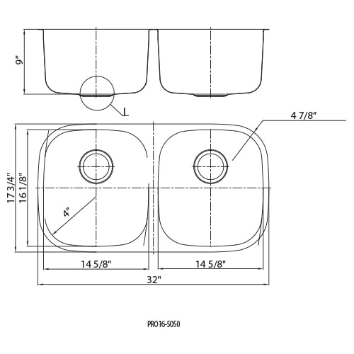 [ExtendedDescription] => Undermount Dbl Bowl 32"x17-3/4"OD|9"D 16 Gauge Type 304 18/10 CrNi OM-PRO16-5050