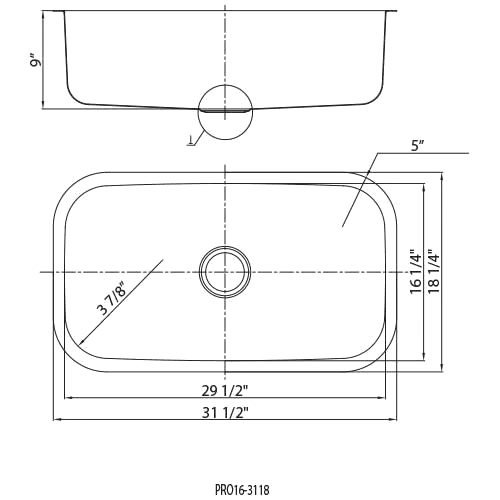 [ExtendedDescription] => Undermount Single Bowl 31-1/2"x18-1/4"OD|9"D 16 Gauge Type 304 18/10 CrNi OM-PRO16-3118